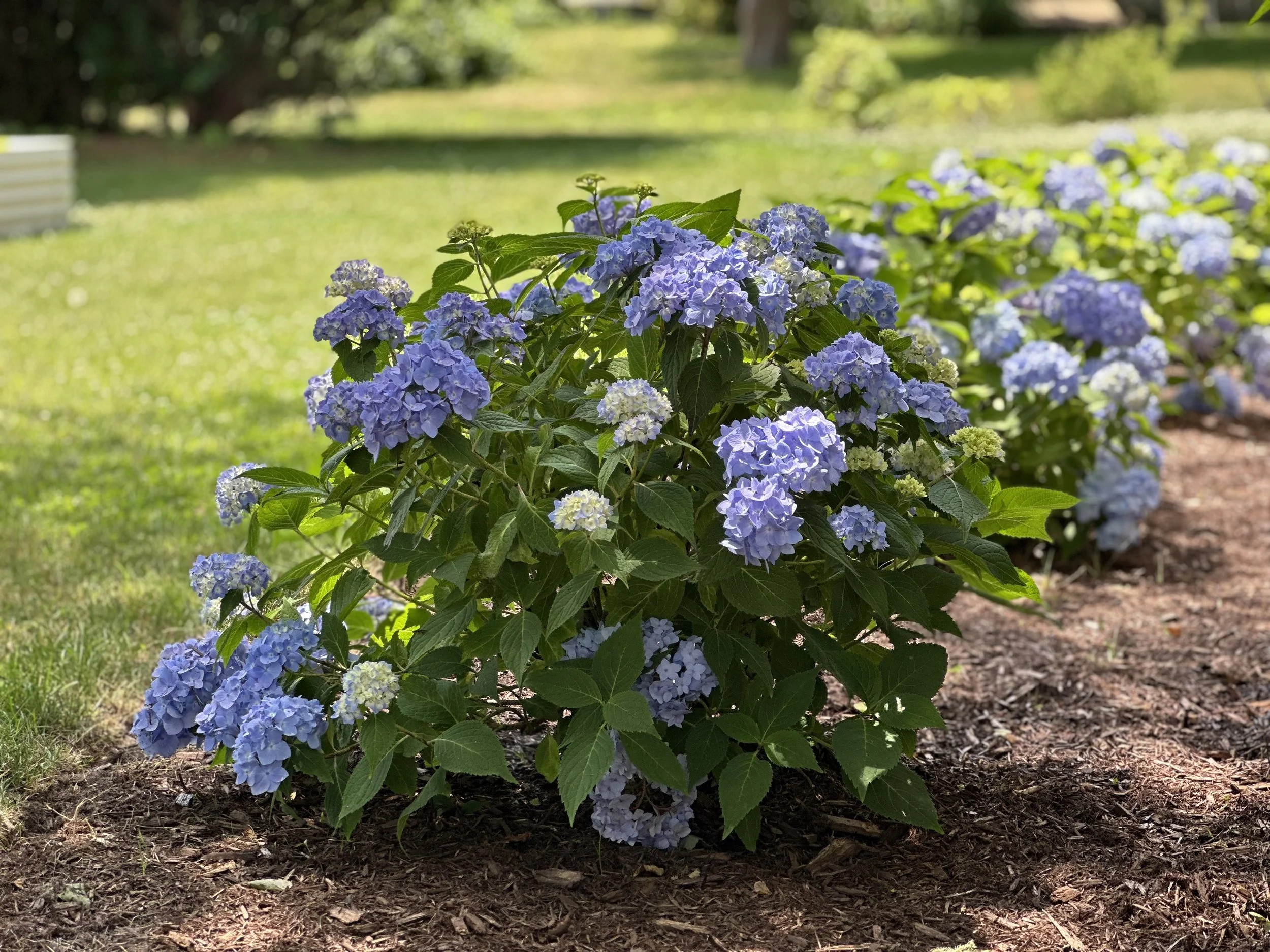 Preparation: Excavated and amended soil with compost and a slow-release, acid-friendly fertilizer to support hydrangea bloom color.